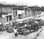 Apesar de já existirem carros a motor, ainda eram muitos os veículos a tração animal.