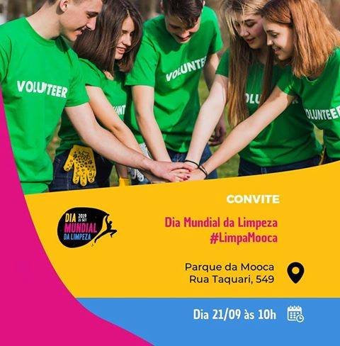 [CONVITE] No dia 21 de setembro (sábado), vai ter o Dia Mundial da Limpeza (World Cleanup Day) em vários pontos da cidade de São Paulo, no Brasil e no mundo. Aqui na Mooca a ação acontecerá no Parque da Mooca, na rua Taquari, 549, no bairro da Mooca, em São Paulo, das 10h às 14h.