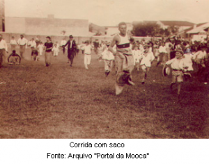 Uma dessas brincadeiras era a “corrida com saco” em que as pessoas colocavam as pernas dentro de um saco e disputavam uma divertida corrida. Desnecessário dizer que a platéia se divertia com os muitos tombos que ocorriam durante as competições.