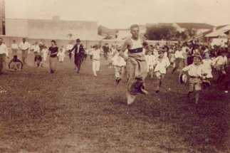 Uma dessas brincadeiras era a “corrida com saco” em que as pessoas colocavam as pernas dentro de um saco e disputavam uma divertida corrida. Desnecessário dizer que a platéia se divertia com os muitos tombos que ocorriam durante as competições.