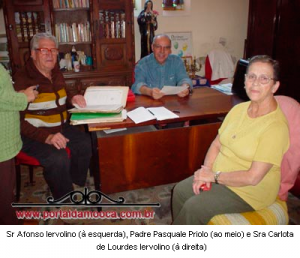 Exatamente no horário marcado, adentrou a igreja o nosso entrevistado, sr. Afonso Iervolino, acompanhado de sua esposa sra. Carlota de Lourdes Iervolino e de muitos documentos históricos da festa.