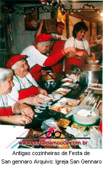 Reuniões e mais reuniões; uns vinham e diziam que seria bom fazer leilão, outros fazer mais rifa, livro de ouro, mas tudo isso não ia arrecadar o necessário, pois precisava de muito dinheiro para reformar a igreja. Até que numa das noites, após a reunião que se estendeu até as 22 horas, paramos aqui na porta da igreja e acho que uma luz que veio do céu fez com que eu olhasse para cima. Olhei para cima e falei para o pessoal (estávamos em oito ou dez): já sei como arrecadar dinheiro, nós vamos começar a fazer a Festa de San Gennaro em homenagem ao Santo de nossa igreja e a festa será no mês de setembro que é o mês dele. Imediatamente começamos a trabalhar para a festa e sempre pedindo para que não dissessem que era quermesse, que era a Festa de San Gennaro.