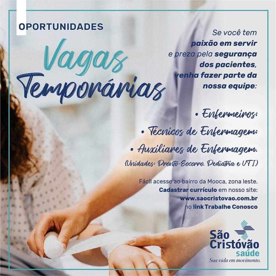 GRUPO SÃO CRISTÓVÃO ABRE DIVERSAS VAGAS TEMPORÁRIAS NA ÁREA DA SAÚDE