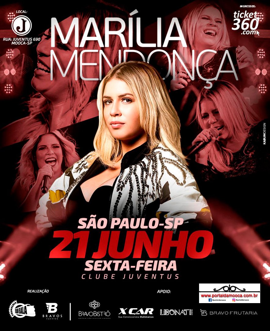 No dia 21 de junho a cantora sertaneja Marília Mendonça fará show no Clube Atlético Juventus.