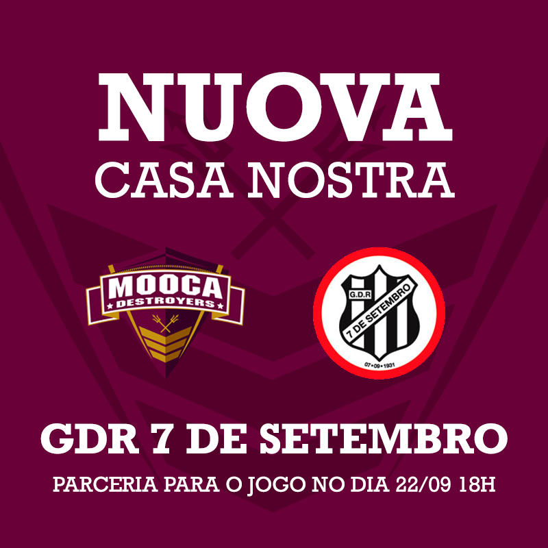 O Mooca Destroyers anuncia o campo do clube 7 de Setembro como sua casa para o compromisso diante do Nova Serrana Forgeds, no próximo dia 22/09, às 18h, pela Liga Nacional de Futebol Americano.