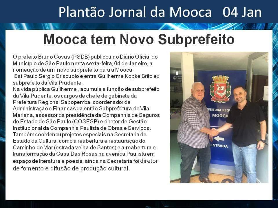 MOOCA TEM NOVO SUBPREFEITO Fonte: Jornal da Mooca Portal da Mooca2019-01-04T23:25:52-02:00 Share This Story, Choose Your Platform! FacebookTwitterRedditLinkedInWhatsAppTumblrPinterestVkEmail Related Posts SACADA PIZZARIA CELEBRA 51 ANOS DE HISTÓRIA SACADA PIZZARIA CELEBRA 51 ANOS DE HISTÓRIA VOCÊ SABIA QUE O FAMOSO JOGO WAR NASCEU AQUI NA MOOCA? VOCÊ SABIA QUE O FAMOSO JOGO WAR NASCEU AQUI NA MOOCA? A HISTÓRIA DO LOCUTOR MOOQUENSE HÉLIO RIBEIRO A HISTÓRIA DO LOCUTOR MOOQUENSE HÉLIO RIBEIRO AS FESTAS JUNINAS ESTÃO CHEGANDO NA MOOCA AS FESTAS JUNINAS ESTÃO CHEGANDO NA MOOCA PROGRAMAÇÃO VIRADA CULTURAL 2025 PROGRAMAÇÃO VIRADA CULTURAL 2025
