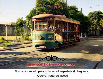O Bonde Nº 38, – da fábrica inglesa Hurst Nelson, ano 1912 – tipo aberto, faz o trajeto Memorial do Imigrante – Estação Bresser do Metrô, por trilhos sobre o leito da Rua Visconde de Parnaíba, sendo que o mesmo foi totalmente recuperado nas Oficinas da Estrada de Ferro Campos do Jordão, de acordo com seus padrões originais: aberto nas laterais, com bancos em madeira de lei reversíveis e capacidade para 35 pessoas. Somente o sistema de tração e freio foram modificados . Para saber o horário de funcionamento ligue para o Memorial do Imigrante – fone 6693–0917