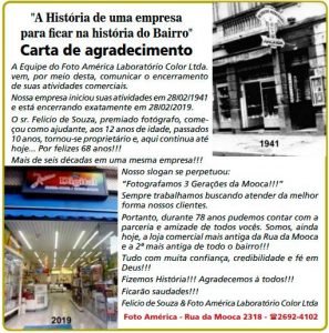 Uma das mais antigas e tradicionais casas de comércio do Bairro, lamentavelmente, comunica o encerramento de suas atividades.